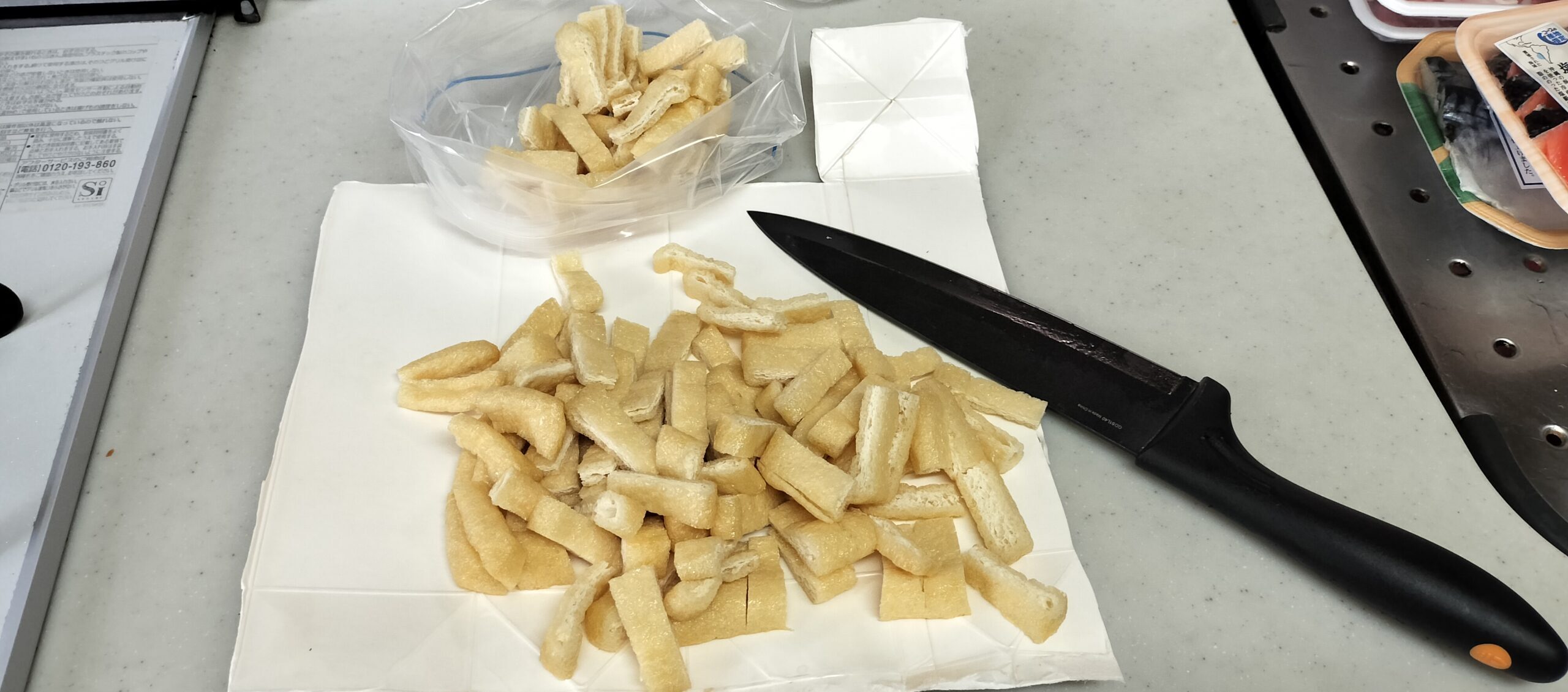 ②油揚げを切る