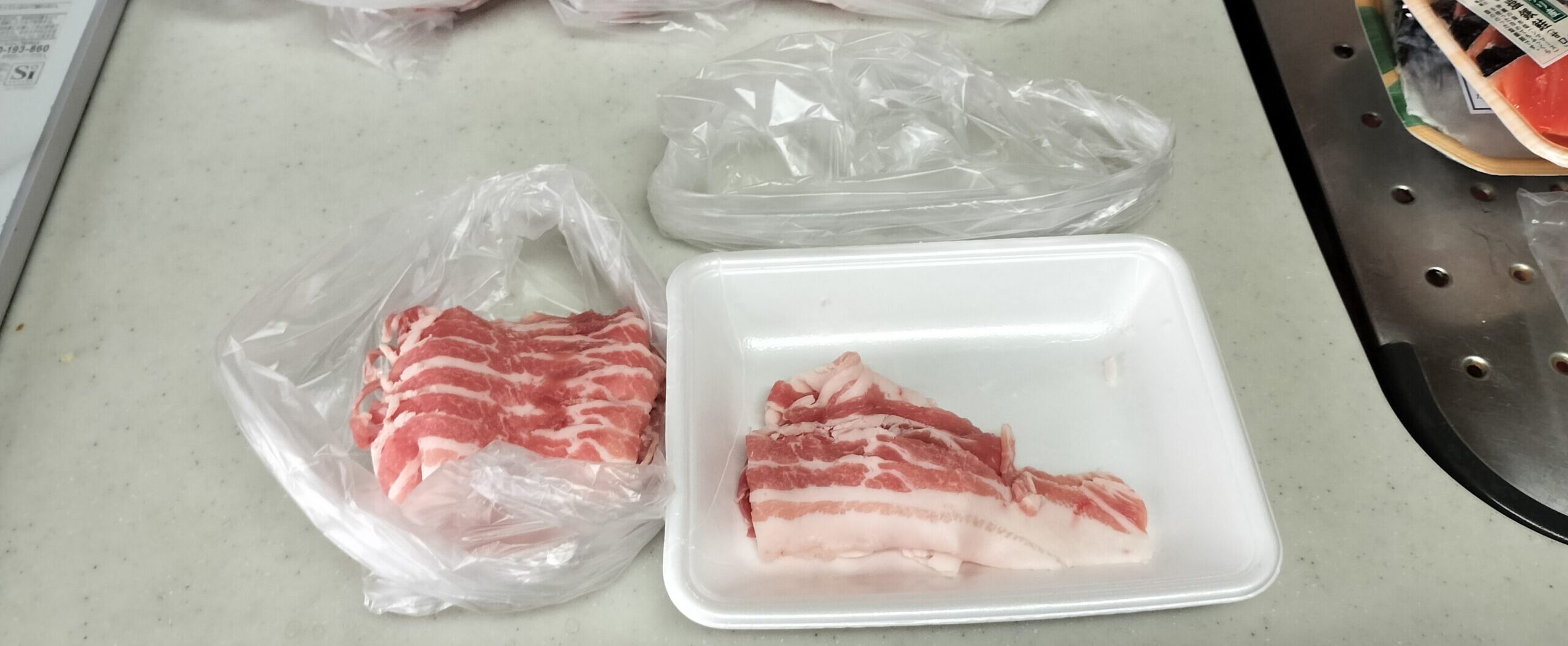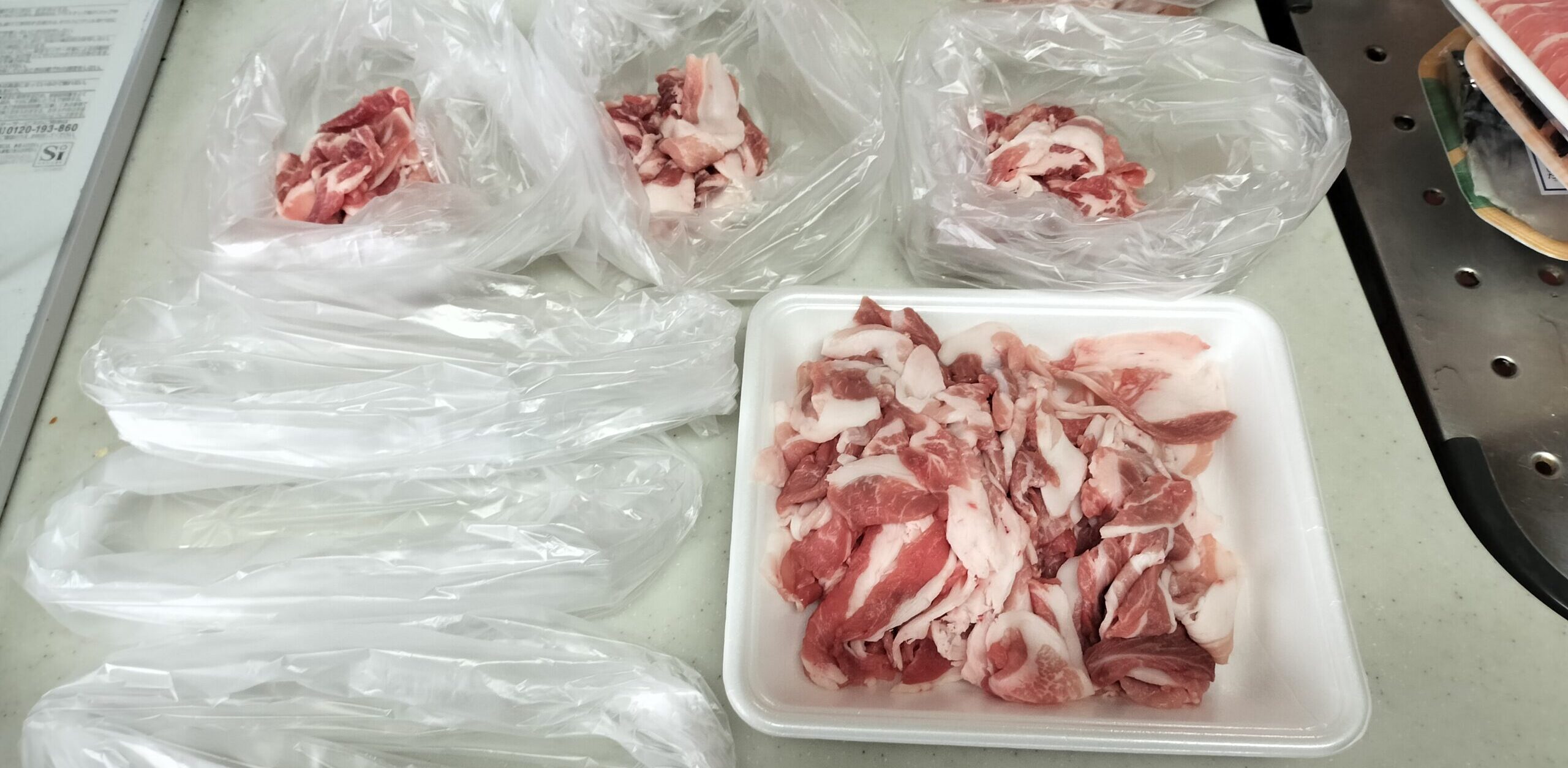 ⑤豚バラ薄切り肉小分け
