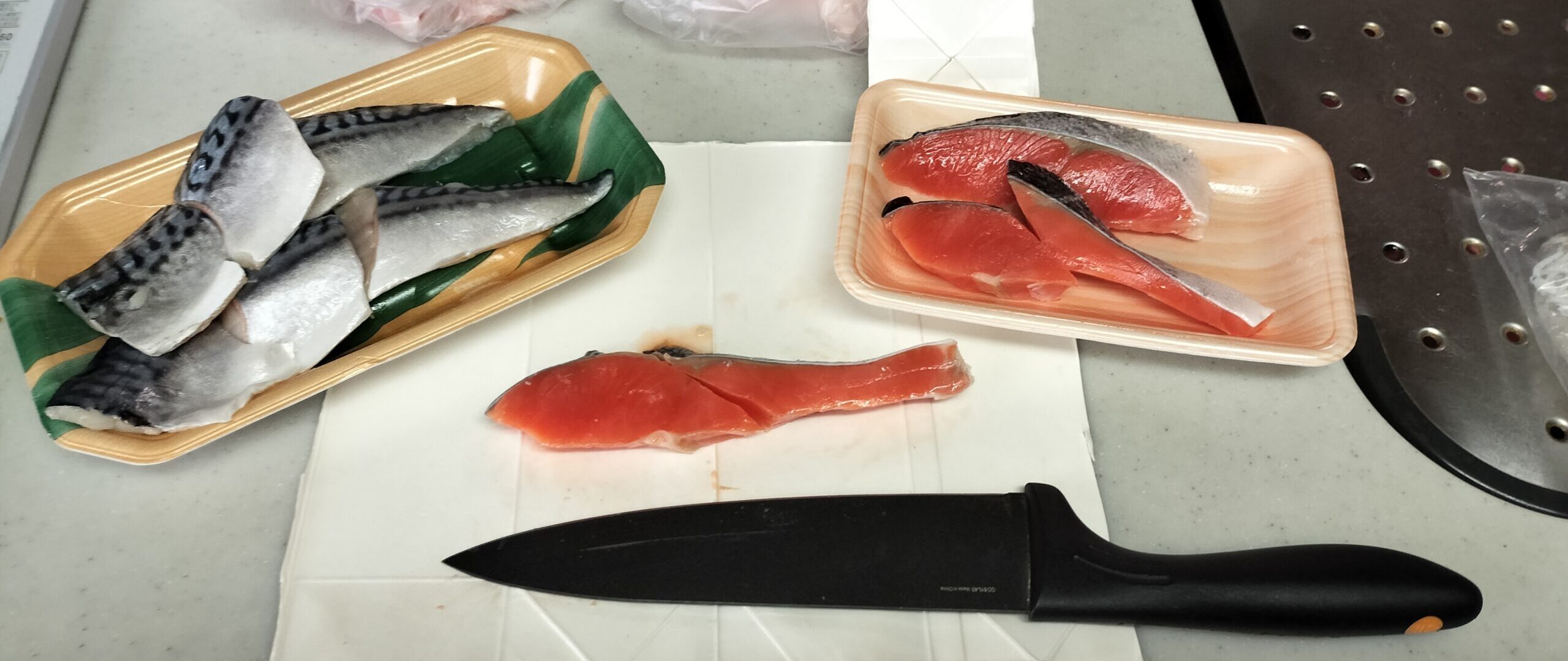 ⑥さば、塩鮭切り分け