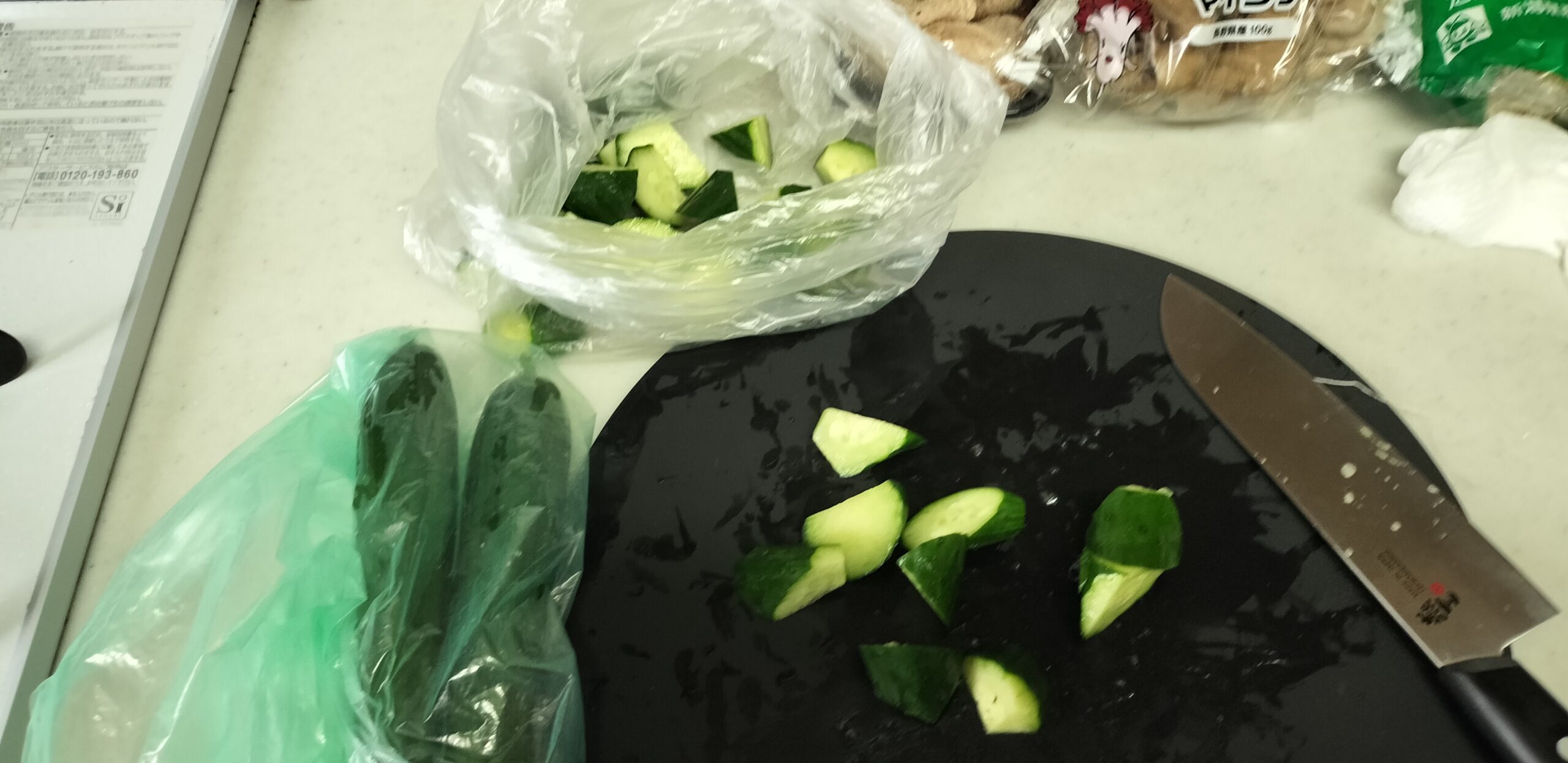 2本乱切りにしてアイラップに調味液と一緒に入れて漬け込む。