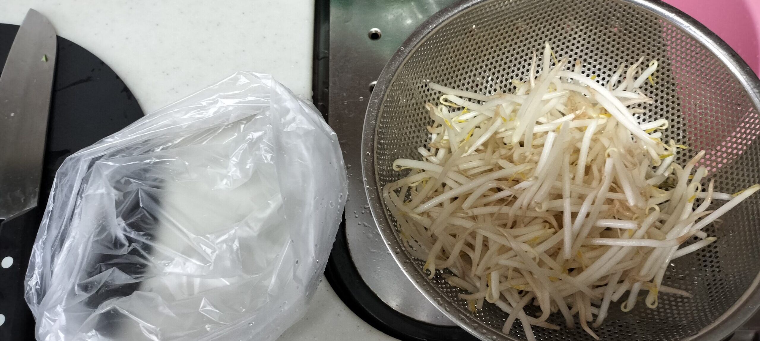 もやしはアイラップに入れて冷凍室へ。