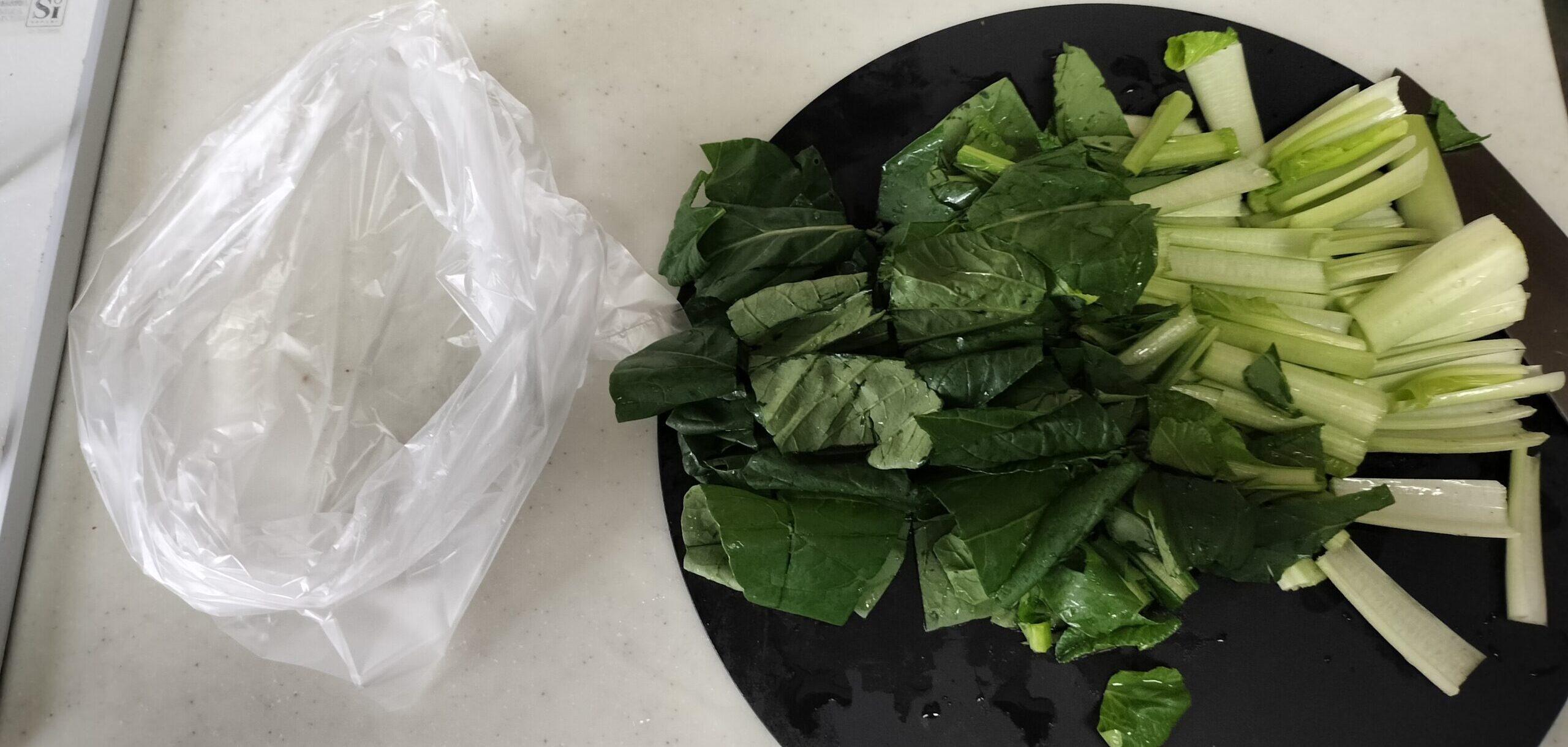 小松菜はカットした後アイラップに入れて冷凍庫へ。