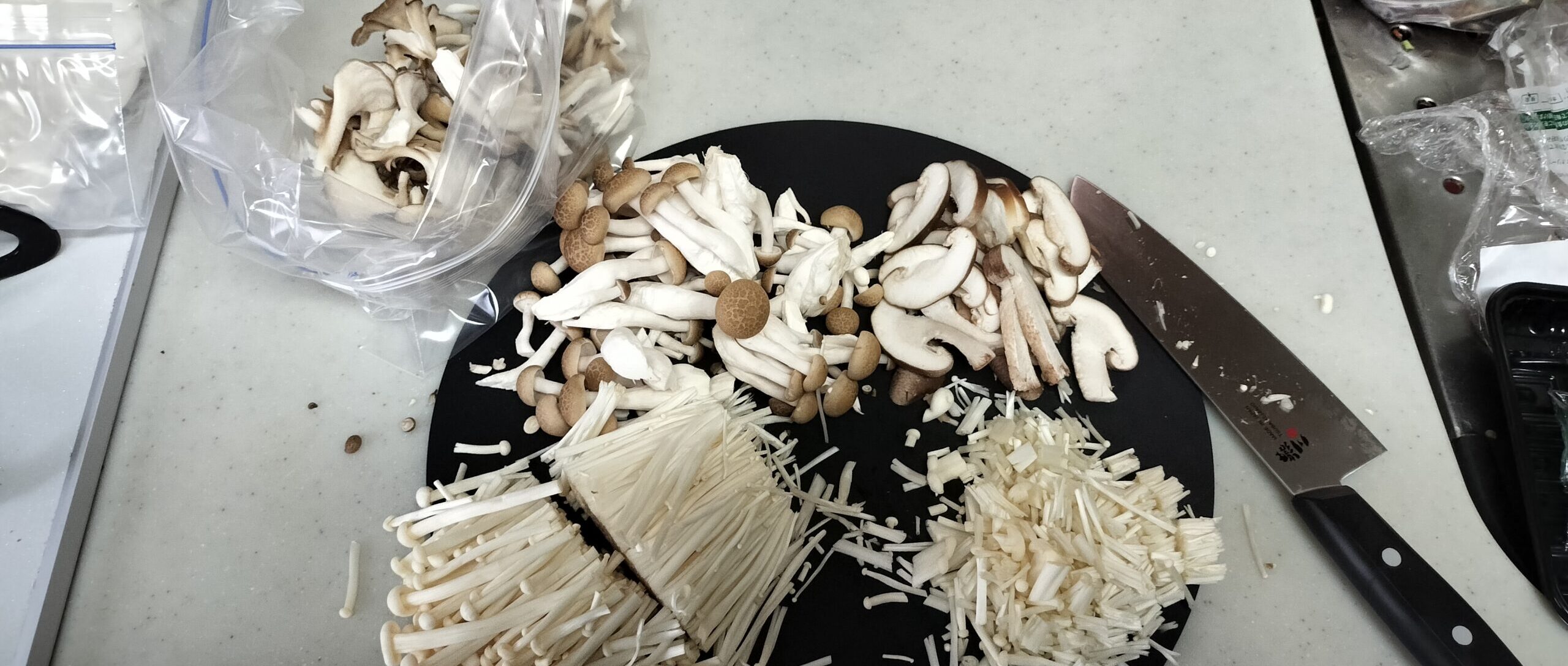 しいたけ、しめじ、舞茸、えのき3/4はジップ付き保存袋に入れる。