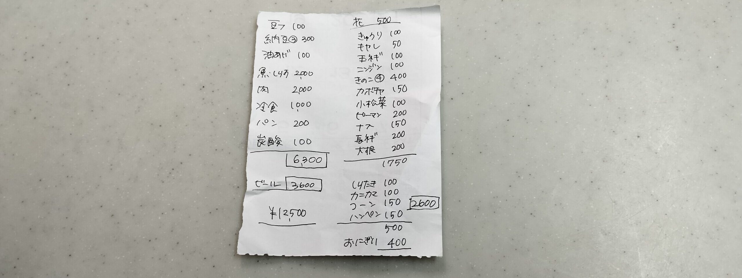 今週の買い出し金額!!
