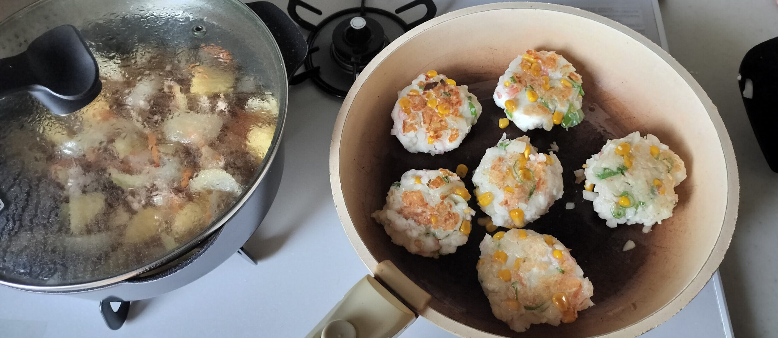はんぺんバーグを成形してフライパンで焼きます。